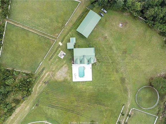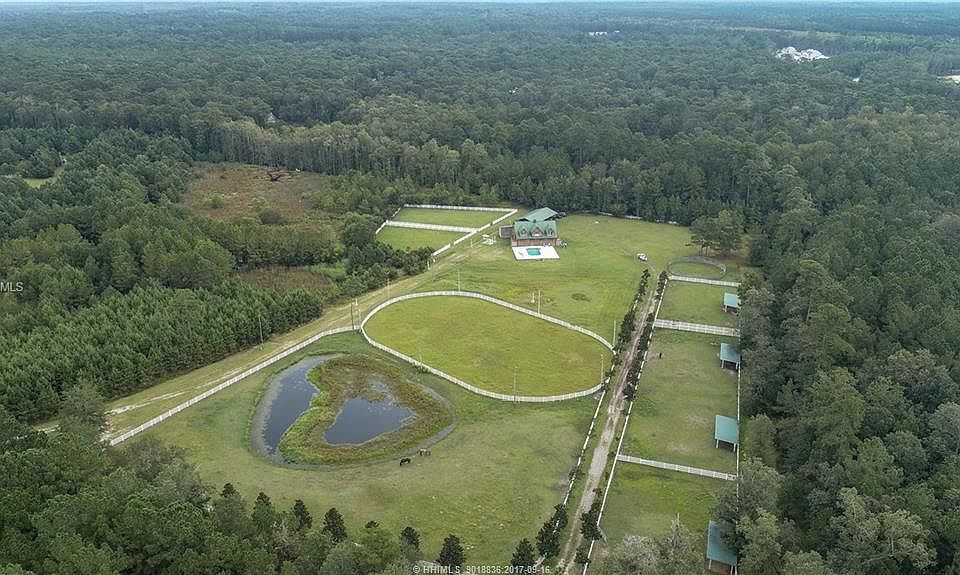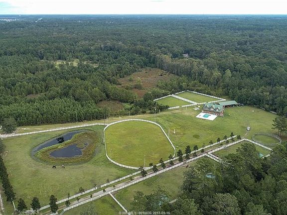 Welcome to Magnolia Farm, the largest private equestrian estate available in Bluffton, minutes from Old Town. Combining 4 lots, this almost 23 acre property backs up to the trail system of Midway Farms. Up to 14 stalls, round pen, hunter/jumper ring w/ irrigation & night lighting, & 6 large paddocks w/ run-ins, this is an ideal location for breeding or training. Down the magnolia lined entrance sits an elevated log cabin inspired home w/ 2 lock-outs overlooking an in-ground pool. Each have their own kitchen & living room w/ the main unit boasting 2BR/1BA w/ stone gas fireplace. Other unit is 1BR/1BA & being sold FURNISHED. Room to build another home on the property. NEW windows & doors, & new HVAC in 2016.