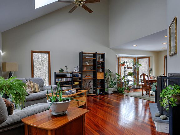 This contemporary home is located on one of the areas most picturesque roads located between Stockton, NJ to the south and Frenchtown, NJ to the north. The house is strategically positioned for privacy, approximately 400' off the road, and for those that enjoy hiking, biking, rock climbing, fishing, boating, tubing, cross country skiing it will be your vacation home residence. The first floor offers an open floor plan featuring the living room with cathedral ceiling, skylights, wood floors and fireplace; dining room with wood floors and door to the rear deck; a beautifully updated kitchen with stainless steel appliances, recessed lighting, granite counters and eating area that flows into the family room. The family room is warmed by a fireplace and the glass doors open to the expansive deck off the rear of the house. The large windows inside the home frame the surrounding natural landscape and flood the interior with sunlight. The second floor offers a spectacular master bedroom suite measuring 32' x 35' and is enhanced by a cathedral ceiling, skylights, walk-in closets and a full bath that was updated in 2006. Completing this level are three additional bedrooms and an additional full bath. A full basement and three car garage complete this property.