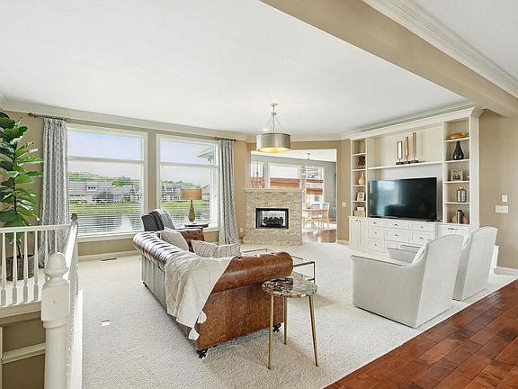 Twin Eagles Ranch home on a finished daylight basement, located on a large pond lot in the center of the Boulevard. Brick front facade, professionally landscaped and manicured lawn with pond-fed irrigation system. This home features over 4300 square feet of living space, beautiful views and tons of natural light from several rooms. 4 spacious bedrooms, 3 full bathrooms and one half bath. 3rd main floor bedroom is currently being used as a den/office. Oversized crown moldings, painted trim, and updated light fixtures throughout the home. Island kitchen has stone countertops, subway tile backsplash and updated appliances. Updated master suite with quartz countertops and Italian tile walk-in shower, tub surround and flooring. His and hers walk-in closets. 1900 square foot partial basement foundation has large daylight windows, the 4th bedroom with walk-in closet, a full bathroom, large open rec area with dry bar, fitness or craft room and additional storage space. Covered back porch deck and open cobblestone patio are great spaces to entertain or just relax and enjoy the view with a fenced area. New sump pump and battery back-up. Two new water heaters. HVAC with Aprilaire and air purifier installed 2018. Call your Realtor today to schedule a private viewing.