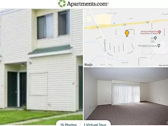 Kitchen and living room downstairs with bedrooms upstairs. Neighboring units to the left and right but no upstairs/downstairs neighbors. Walkable neighborhood, close to Cornell-bound bus lines 30, 31 an 32. Central heat and AC. Washer/Dryer and dishwasher in unit. Gas stove. Fenced, private backyard. Ithaca school district with highest rated elementary, middle and high school. Playground on property and parks nearby. Rent includes water, hot water and cooking gas. Tenant pays for heating gas, electricity, internet. Inexpensive annual trash and sewer fee (~$150). One reserved parking spot included with unit and free street parking is available.