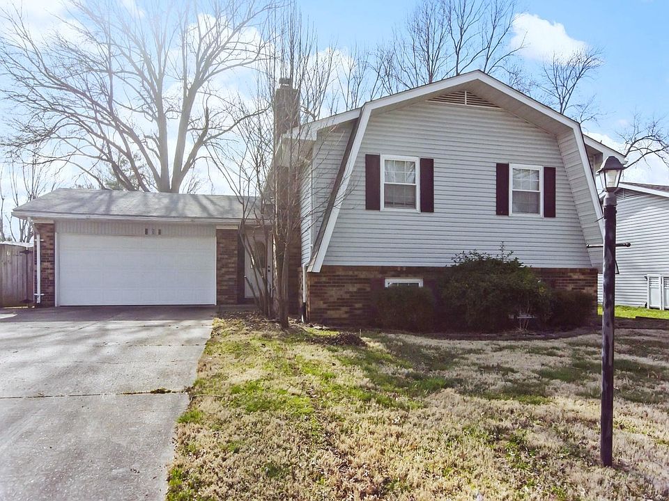 Attention investors or buyers looking for sweat equity! Great home in Wolf Branch School district. With a little work, this home will be ready to go. Large master bedroom with double closets and 3/4 master bathroom. Additional bedroom on main level and guest full bath. Large eat-in kitchen with double ovens and gas cooktop. Lower level features a large family room with bar/kitchenette area, plus 2 additional bedrooms. One bedroom has washer/dryer hook up so it's perfect for a flex space or a mudroom. Additional bathroom in basement has rehab started and needs to be completed. Enjoy the 24 x 12 covered deck overlooking the back yard with a wood privacy fence and storage shed. 2-car attached garage with plenty of storage too! Don't miss this great opportunity. Property being sold as-is. Buyer responsible to pass city occupancy inspection. Cash or conventional financing only. Quick closing possible!