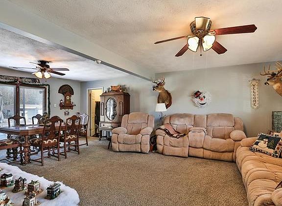 Wonderful one level living in this 3 Bedroom, 1.5 Bath Ranch style home with an amazing open floor plan. Fabulous Entry Way welcomes you into the 16X13 Living room and 16X9 adjoining Dining room with newer carpet, lighted ceilings fan and an Atrium door walkout to the back Patio and half an acre level lot backing to trees. Fantastic Eat in Kitchen features ample cabinetry and counter space, bead board wall accent with chair rail, double sink and appliances including a dishwasher and gas range/oven with range hood. Master Bedroom offers a double door closet and a private half Bath. Secondary Bedrooms provide deep extended closets. Hall full Bath with full size vanity, overhead medicine cabinet and shower with tub and adjustable rain effect shower head. 18X8 Laundry/Utility room. 16X14 Patio and 12X11 Patio. Utility Shed. 2 car oversize Garage with over rafter storage, workshop area and walkout. 2-4+ car parking pad. Newer roof and well pump in 2015. Newer A/C unit in 2016.