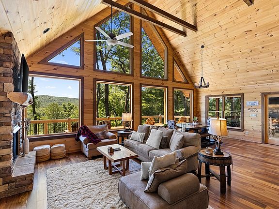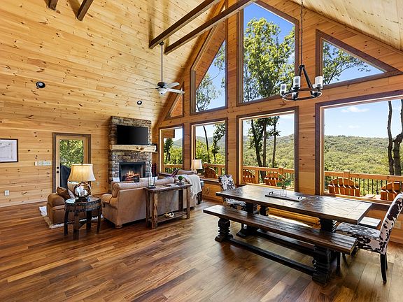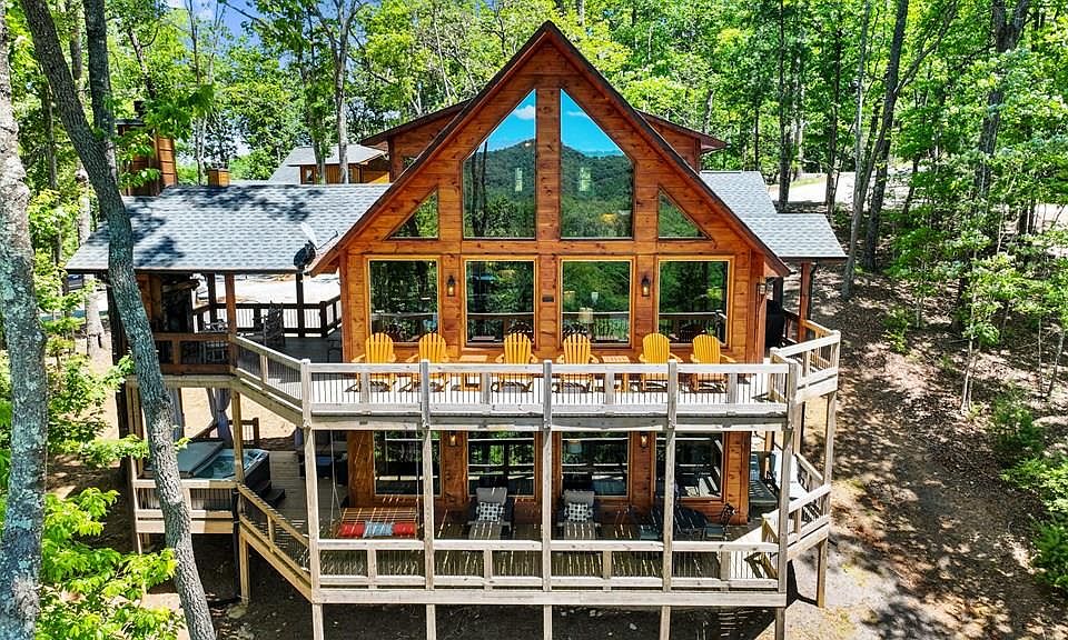 SMACK DAB in the heart of the ASKA ADVENTURE AREA, this property offers YEAR ROUND LONG RANGE VIEWS of the National Forest. Just minutes from the Toccoa River, biking, hiking trails, and Lake Blue Ridge, this 4-bedroom, 3.5-bath flat-front cabin on 1.57 acres has it all. The open kitchen features custom tiled flooring, granite countertops, a large farm sink, and a tiled backsplash, seamlessly flowing into a great room with a stacked stone fireplace and a wall of windows to showcase the stunning views. Enjoy custom tiled showers and bathrooms, hardwood flooring on the main and upper levels, and a terrace level complete with a wet bar, a stacked stone fireplace, and a large party deck with an outdoor wood-burning fireplace. The expansive decking is perfect for entertaining, and you're just minutes from Blue Ridge's dining and shopping, the Toccoa River for tubing and kayaking, and the USFS for hiking and mountain biking. Ideal as a breathtaking getaway, a second home, or a short-term rental, this property is sold turn-key. Just bring your toothbrush! Rental history is available upon request.