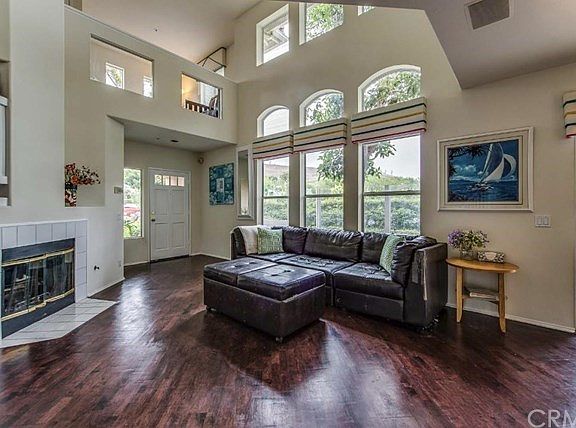 Enjoy the best location in the "California Terrace" community in beautiful Mission Viejo. This former MODEL home sets on a hill overlooking Saddleback mountain and lovely greenbelt views. A corner location with numerous high windows enhances the views and the glassed-in patio affords lots of pleasant leisure time with friends and family. The "Horizon" model boasts three bedrooms and two and one half baths. The third bedroom is currently utilized as a loft with an open side and shelves in the closet. Real wood flooring runs through the great room, dining room with mirrored wall and kitchen; this area also contains the fireplace and a half bath. The kitchen is open to the dining room/great room and also has a breakfast counter. The patio extends from the dining room through sliding door. Interior access to the double garage which contains a double sink, numerous cabinets for storage and the washer/dryer. Upstairs, the Master faces Saddleback for your viewing pleasure day and night. This Master has large, ensuite bath/tub combo, double sinks and huge, walk-in closet. A second, full bath resides in the intermittent-glassed hallway to the second bedroom w/mirrored, double closet. Speakers throughout the home. Lake Mission Viejo rights.