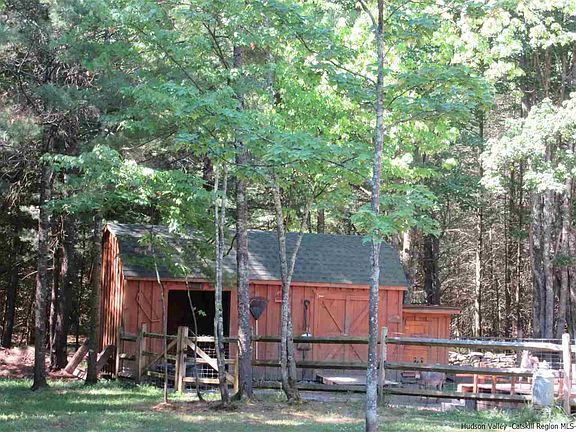 Custom Log Home by Amish Builder Hochstetler Milling Ltd with its farmers front porch. Long driveway leads to this beautiful home which is set back off private dead end road. Lush grounds with flower beds, manicured lawn and woods full of hemlocks and pines with hiking trails. A Horse barn and paddock area in the back. This 2 bedroom home easily turned to 3 or 4. The open layout, vaulted ceiling, rich woods and natural stone for wood stove make the home warm and inviting. The sunroom adds a wonderful place to sit and enjoy these country surroundings.The full unfinished basement could be for family room and guest quarters with its high ceilings. The 8.2 acres gives you total privacy. Yet minutes to Hunter and Windham for skiing, mountain biking, Zip line, arts, restaurants and more. Call for private showing.