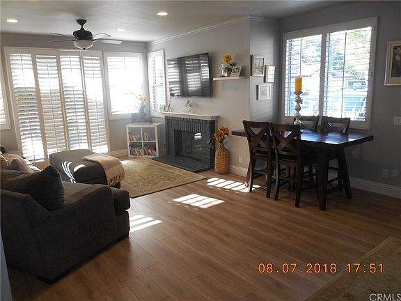 SINGLE STORY CORNER END UNIT WITH LOTS OF NATURAL LIGHT AND TREE VIEW FROM THE INSIDE. THIS IS AN OPEN FLOOR PLAN WITH HIGH CEILINGS AND RECESSED LIGHTING. ENJOY YOUR FIREPLACE AND PLANTATION SHUTTERS AS YOU WATCH YOUR FAVORITE SHOWS IN THE EVENING WITH YOUR FAMILY. LARGE LANDSCAPED PATIO WITH AFTERNOON. ENJOY THE BEAUTIFUL LAMINATE FLOOR AND BASEBOARDS AS WELL AS THE CROWN MOLDING THROUGHOUT THE HOME. CHECK OUT THE COUNTER SPACE IN THE KITCHEN, NOT TOO BAD! THE GUEST BATHROOM WAS RECENTLY REMODELED. THIS HOME COMES WITH AN ATTACHED 2 CAR GARAGE THAT ALSO ALLOWS YOU TO PARK ADDITIONAL SMALL CARS IN THE DRIVEWAY, HOW AWESOME IS THAT? THE GARAGE ALSO COMES WITH THE GARAGE FLOOR JUST BEING PAINTED. THIS IS ALSO A SHORT WALKING DISTANCE TO THE ASSOCIATION POOL AND SPA. THIS HOME HAS RIGHTS TO VOLLEYBALL COURTS, BASKETBALL, PICNIC AREAS, WALKING TRAIL AND TO LAGO SANTA MARGARITA. IT DOESN'T GET ANY BETTER THAN THAT. WELCOME HOME!