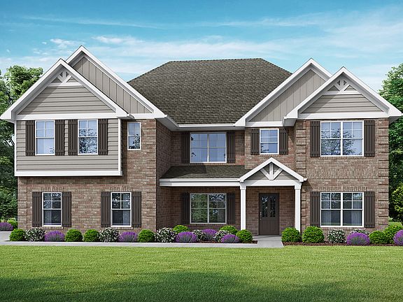 Welcome home to the Kingston II, an awesome multi-generational design with 2 master suites (one on the main level and one upstairs). Make a grand entrance into your 2 story Foyer opening to the Formal Dining Room with a coffered ceiling. You will love spending time in the eat in kitchen & family room which flow seamlessly together providing the perfect space to be with friends & family. The columns provide a nice separation between spaces but still open so that you can enjoy the company of everyone in your home. As you find yourself cooking in your beautifully laid out kitchen, everyone will congregate around the granite island where all the wonderful memories will be made. Retreat upstairs to your huge master suite with a trey ceiling, experience the tranquility of the separate sitting area with it's own (optional) fireplace, indulge yourself to a relaxing bath in the soaking tub & rejoice in the separate closets! Enjoy a beverage or read a book in the loft that overlooks the foyer. The jack in jill bath connecting 2 of the bedrooms is always a favorite. The master suite on the main level features bay windows to allow in the natural light and provide the perfect space to sit & watch the birds play in the backyard. An optional 3rd car garage and Game Day porch with a fireplace are just a couple of the added bonuses you can include to make the Kingston II your own.Options and upgrades shown in photos may not be included in price.