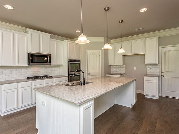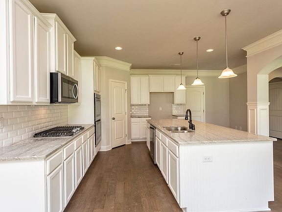 Welcome home to the Kingston II, an awesome multi-generational design with 2 master suites (one on the main level and one upstairs). Make a grand entrance into your 2 story Foyer opening to the Formal Dining Room with a coffered ceiling. You will love spending time in the eat in kitchen & family room which flow seamlessly together providing the perfect space to be with friends & family. The columns provide a nice separation between spaces but still open so that you can enjoy the company of everyone in your home. As you find yourself cooking in your beautifully laid out kitchen, everyone will congregate around the granite island where all the wonderful memories will be made. Retreat upstairs to your huge master suite with a trey ceiling, experience the tranquility of the separate sitting area with it's own (optional) fireplace, indulge yourself to a relaxing bath in the soaking tub & rejoice in the separate closets! Enjoy a beverage or read a book in the loft that overlooks the foyer. The jack in jill bath connecting 2 of the bedrooms is always a favorite. The master suite on the main level features bay windows to allow in the natural light and provide the perfect space to sit & watch the birds play in the backyard. An optional 3rd car garage and Game Day porch with a fireplace are just a couple of the added bonuses you can include to make the Kingston II your own.Options and upgrades shown in photos may not be included in price.