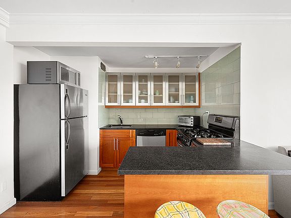 Building offers an amenity package that includes doorman, laundry, elevators and roof deck with beautiful views of Downtown Manhattan.