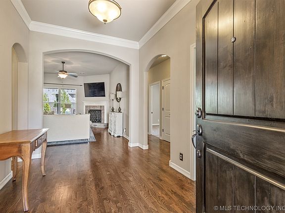 Welcome home to this gorgeous 3 bed, 2 1/2 bath home in Yorktown Neighborhood. This stunning home located in Jenks offers a perfect blend of luxury, comfort, and convenience, making it the perfect place to call home! As you step inside you will be greeted by a spacious and open floor plan that is flooded with natural light. Right off the entry french doors lead into an oversized office or secondary den. High ceilings and a cozy fireplace featured in the living room create a warm and inviting atmosphere for relaxation. The kitchen is a chef's dream with a center island that provides additional workspace and seating, making it perfect for casual meals or hosting gatherings. The backyard features an oversized patio perfect for entertaining. Conveniently located near major highways, commuting to nearby cities is a breeze.