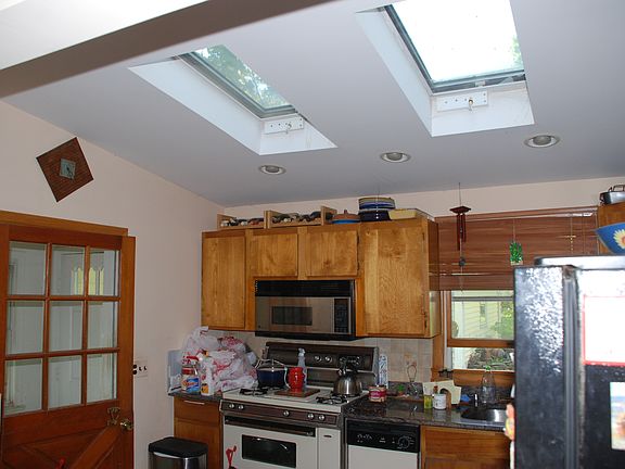 Charming 2 Bedroom ranch (previously 3) sitting on a large deep property with a detached 1.5 car garage. Central A/C., newer rood, vinyl siding, granite counters, vaulted living room ceiling, full unfinished basement. Light and bright with 5 skylights. ~1/4 acre and low taxes. First showing Open House April 29th 11-1Pm