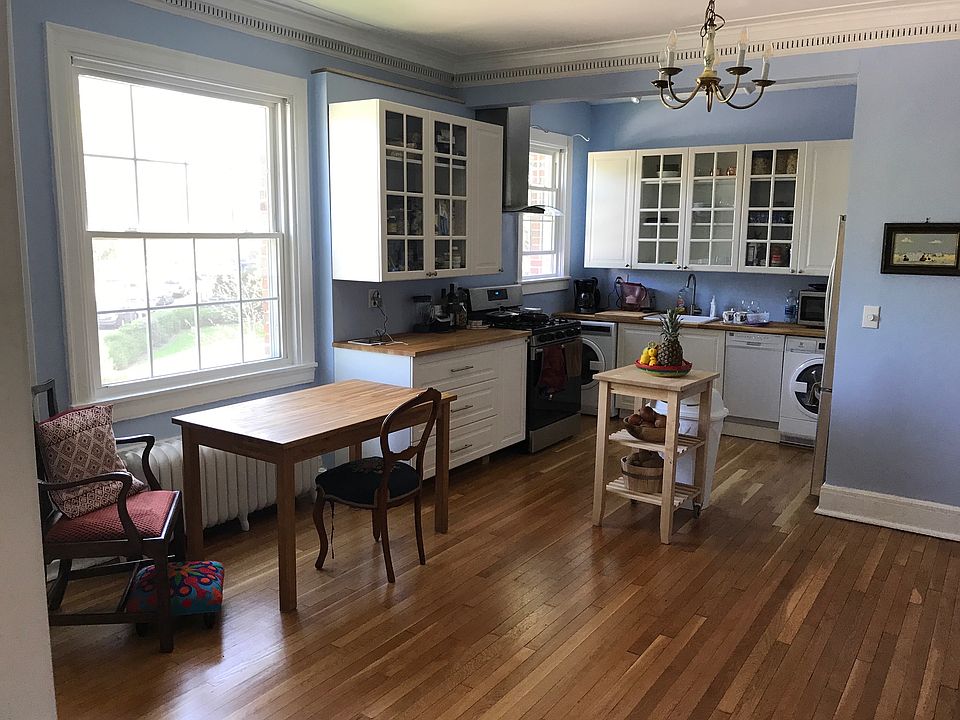 Newly renovated and restored 2-bedroom spacious beautiful apartment with hardwood floor and charming atmosphere. Great place where you will relax and enjoy spending time. Brand new kitchen and bathroom. Washer and dryer on premisses. Optional: furnished or not. Rent includes heating and water. Interview, references, prepayment of 1st and last months, security deposit
