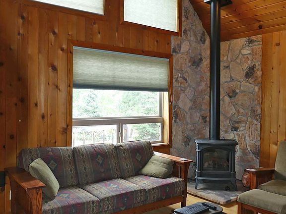 Just say ahhhh as you enter this charming and spotless chalet style Joseph home. Beautiful woodwork throughout. Efficient and open floor plan offering a bedroom and full bath on each of the two levels. Laundry room on main floor. Well kept fenced yard and oversized detached finished garage. Enjoy the beautiful mountain view through the large quality windows inside or the spacious deck.