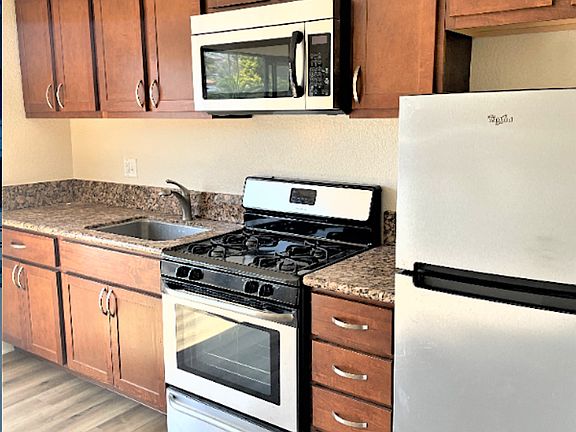 Freshly upgraded studio top level unit with full kitchen and balcony in the charming Hacienda by the Seashore building with lush landscaping. Spacious apartment with granite counters, stainless steel appliances, oven, fridge and microwave. Newer laminate flooring throughout. Private balcony and closed-door security building with intercom system, gated parking and elevator access to all levels. Community coin-op laundry room. Excellent beach living in downtown San Clemente! Walking distance to the beach, grocery store, shops and restaurants. Assigned parking spot available for $50/Month. TWO WEEKS FREE!!