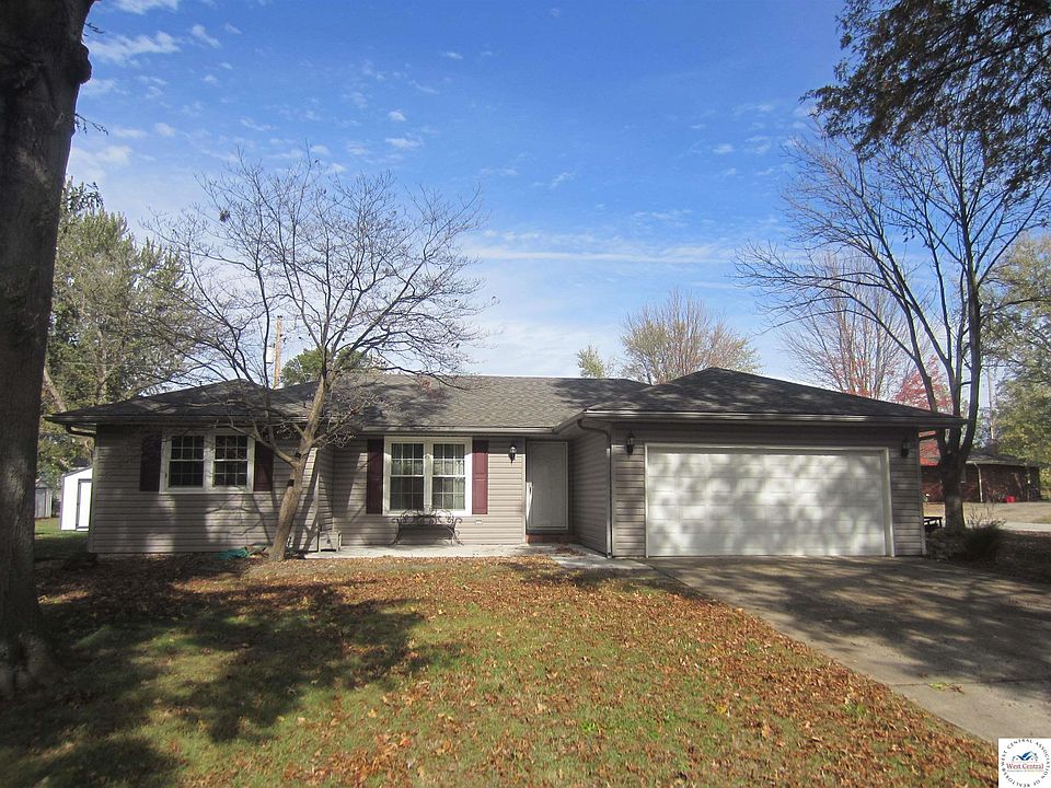 This home sits on a shaded corner lot and has great curb appeal. It is a 3 bedroom, 2 bath home with a woodburning fireplace in the large living room and also a dining room to entertain your guests or have room for a family dinner. All appliances stay in the kitchen and the washer and dryer. The laundry room has great shelving and hanging bars for extra storage. The garage also has shelving to help with storage. The workbench in the garage does fold up to be out of the way. Many things have been updated over the last few years: windows, patios, roof, white vinyl fence and new garage floor.