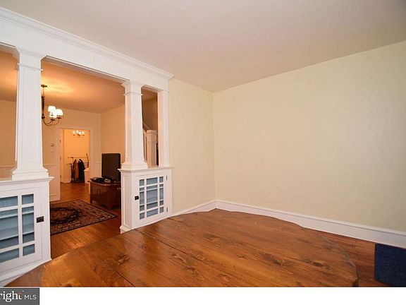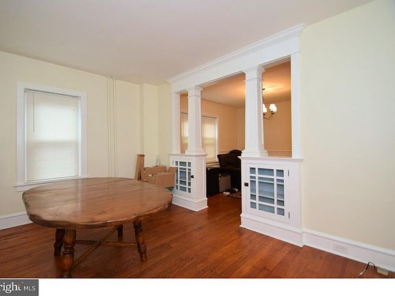 Large front porch welcomes you into this cute brick twin home in the heart of the Telford boro. The original woodwork is found throughout the home in built-in bookshelves, natural trim and hard wood floors. Living room and dining room combo offers flexibility and open floor plan. Large eat in kitchen offers recessed dimmable lighting, tiled back-splash as well as recently updated with modern appliances and conveniences. Handy mud-room back porch area with half bath and walk-way to the detached garage and alley parking. Second floor offers master bedroom with two closets and 2 additional bedrooms and full tiled remodeled bath. Finished 3rd floors offers large 4th bedroom or office/playroom/workout space. Basement has laundry and great storage area and bilco door to rear yard. Well maintained home ready for new owner . Walk to town for so much.