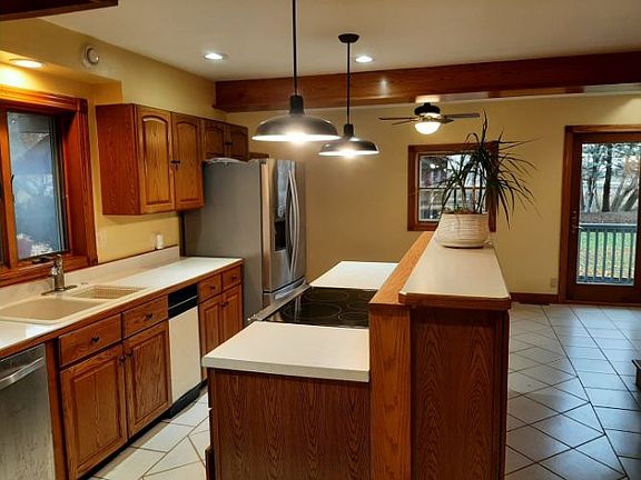 Need a big house in a small town this is the one! 2800 square feet of living space in this 4 Bedroom, 2 Full bath, 2.5 car garage home. Home boasts a spacious kitchen with high quality cabinetry, ceramic flooring, and table space. The additional dining room adds more eating space. Kitchen has patio doors which lead to a deck and over-sized back yard, perfect for entertaining!! Home has a traditional living room plus a beautiful Family room with cathedral ceilings and a stone hearth gas fireplace. Beautiful oak trim throughout! Full bathroom on each level. Main floor laundry. Over-sized garage has gas hook up if you wanted a heated garage. Mechanicals in great working order, furnace is brand new. This home is very solid and has been loved for so many years!!
