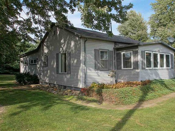 Move in ready 3 bedroom, 2 bathroom, 1372 sq. ft. home with 2+ car detached garage and DRY unfinished basement on a .75 acre in town parcel. "News" include: 2015 new GFA furnace; Everdry basement system in basement, electric range/oven, microwave range hood and dishwasher. 2014 new Pex plumbing, electric hot water heater. 2004 new roof. Open floor plan, large master bedroom, living room with gas log fireplace, large dining room/family room, 3 seasons room, 2 additional bedrooms, 2 bathrooms, and a fully appointed kitchen complete the main level, plenty of storage available in the partial basement.