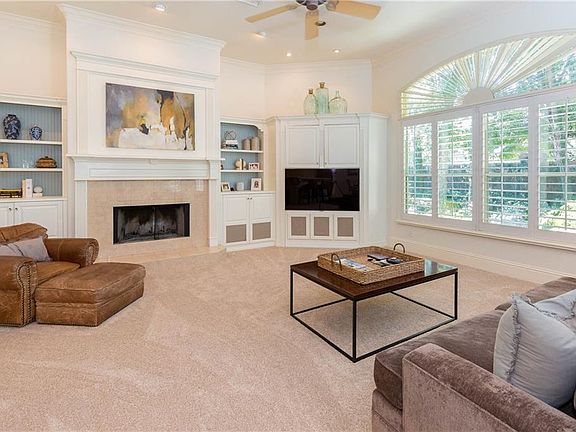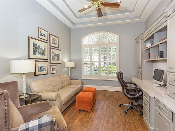 - Interior Features: Ceiling Fans(s), High Ceiling(s), Master Bedroom Downstairs, Split Bedroom, Crown Molding, Walk-In Closet(s), Solid Surface Counters, Eating Space In Kitchen, Kitchen/Family Room Combo, Built in Features, Tray Ceiling(s), Coffered Ceiling(s)