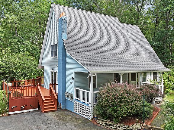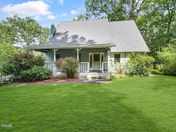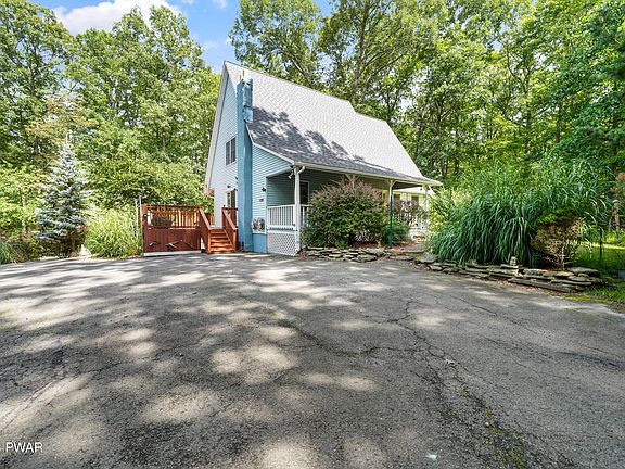 A GARDEN LOVER'S PRIVATE OASIS LOCATED ON 1.40 ACRES JUST MINUTES TO TOWN! Search no more for your weekend get away or new full-time home located in one of the area's most sought after communities. This 2 bedroom (bonus 3rd bedroom needs a closet), 2 full bath property features a NEW ROOF & NEW SHEATHING, NEW GUTTERS, NEW SEPTIC & WELL PUMP, A JACUZZI, PAVER PATIO, FENCED IN YARD, WALK-OUT PARTIALLY FINISHED BASEMENT, DOUBLE OVENS, FRESHLY CLEANED CARPETS, SS APPLIANCES & A WOOD BURNING STOVE! Enjoy a covered front porch, back deck, 2 sheds, & gardens galore; apple, peach, & magnolia trees etc! Knotty-pine ceilings & wood accents deliver that Pocono charm & warmth! A first floor primary bedroom with ensuite provides the perfect retreat! WALK UP ATTIC W/ POTENTIAL! FREE BUYER WARRANTY, Beds Description: Primary1st, Baths: 1 Bath Level 1, Baths: 1 Bath Level 2, Beds Description: 2+BED 2nd