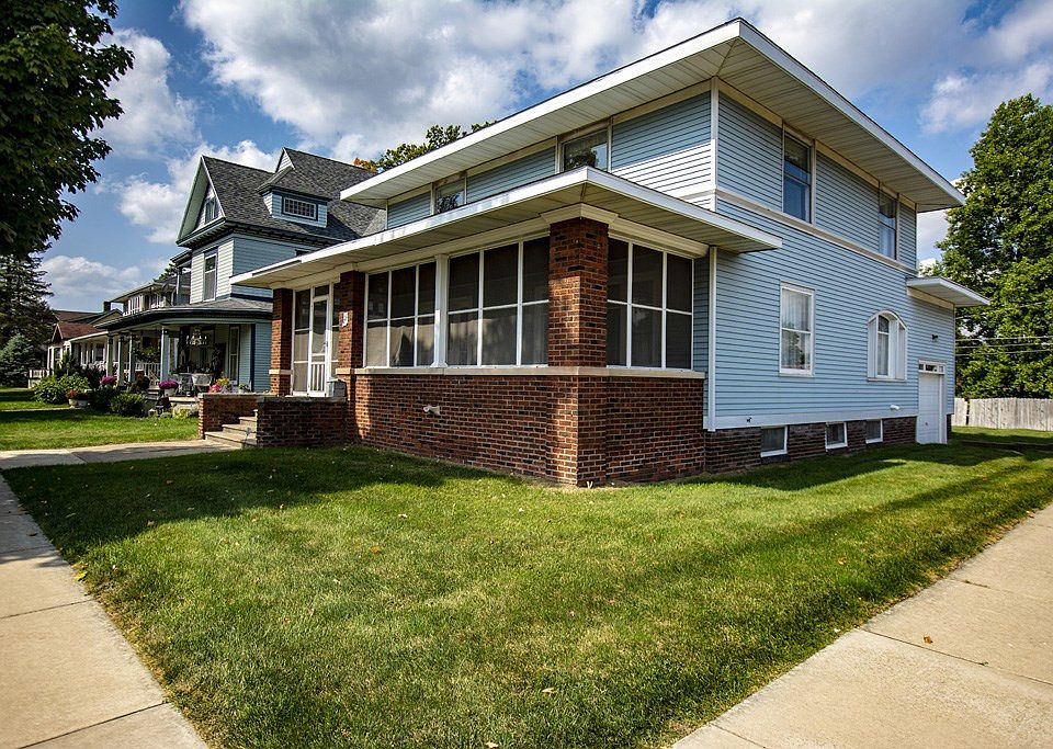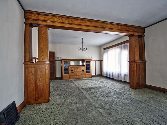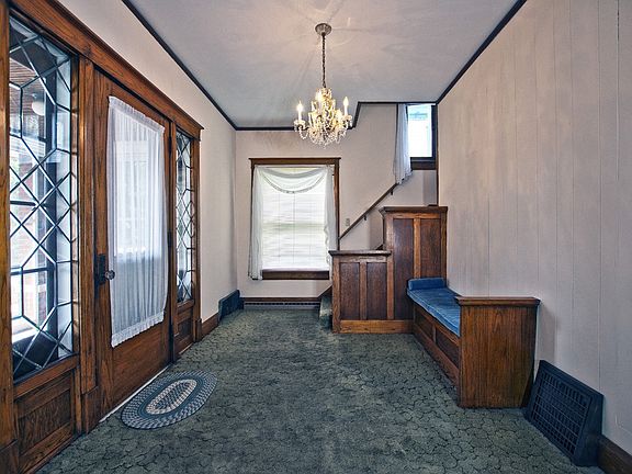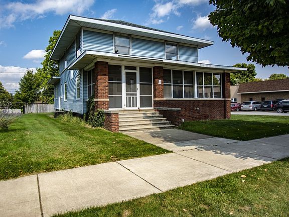Absolutely beautiful piece of New Carlisle History nearly untouched. Home has original doors, trims, and beautiful built In cabinetry. Hardwood flooring under some if not all of the carpeting. This home has been in sellers family since it was originally built. No alterations to the floor plan have been made to knowledge of the sellers and this home has been loved and well cared for. Main level has kitchen, living room and dining room as well as master bedroom and a bathroom. Large screened in front porch leads to a large open foyer entry with built in bench. Upstairs offers 4 large bedrooms all with nice large closets and some with built in drawers or cabinetry. Upper level bathroom has been updated with new vanity, window and tub/shower combo as well as built in linen pantries. Access to flat roof from upper level where you can walk out and overlook back yard. Basement is clean and dry and is where you will find the laundry as well as several areas for storage and the newer furnace. One car garage is attached with side road entry. Nice size back yard on corner lot. Come check out this beautiful piece of history.