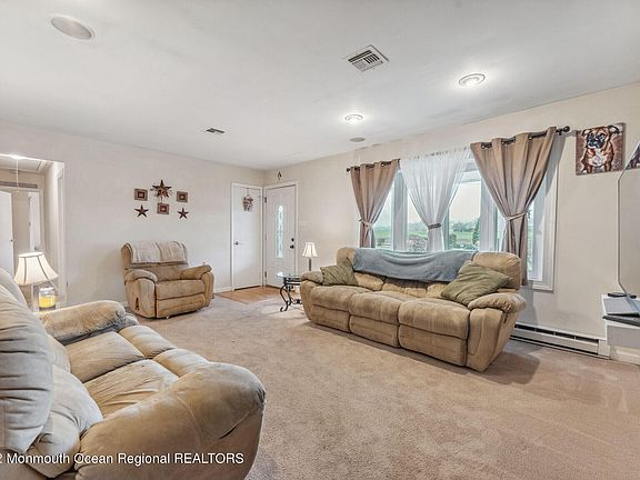 Expect to be charmed! Come and see this wonderful opportunity to own a 3 bedroom 3 bath ranch home in sought after Plumsted Township. Cozy front porch leads inside to 1,340 square feet of living space with generous sized rooms. Large living room offers a beautiful bay window overlooking the field, built-in bookcase and a pellet stove for those winter nights. Large eat in kitchen with oak cabinets, bay window, and recessed lighting. 24x22 deck leads you to the oversized fenced yard. The basement offers multiple rooms that have been partly finished including a wet bar. Additionally, in 2016 the septic was enlarged as well as the leach field, and water treatment system. With some TLC, this house can be your place to call home!