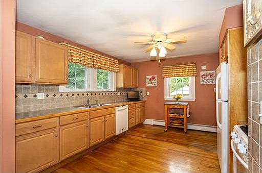 Charming, family home in an AMAZING LOCATION, close to schools, major routes, and the town beach! Highly practical floor plan. First floor offers a family room, a kitchen that opens up to a spacious Dining Room with plenty of room to entertain, two bedrooms, full bath and a beautiful sun-filled screened in porch! Second floor offers two bedrooms, one of which is a HUGE Master bedroom, and a full bathroom. Added bonuses are a 2 car garage, level lot, private yard and plenty of storage!