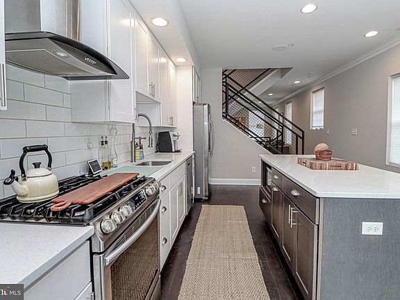 Available now in Federal Hill Square! Former model home for sale with all the upgrades. Just built in 2019 this home features an industrial staircase that is a unique focal point of the nearly 2000 sq ft home. A stunning kitchen features granite counters, energy efficient appliances including a gas cooktop and French doors leading to a balcony. Three bedrooms each have a high end full bathroom. The first floor/entry level bedroom can be used as a spacious home office. The entire home is wired for cable and ethernet and there are built-in speakers in the kitchen. You will love entertaining on the two rooftop decks that offer panoramic views of the city and Camden Yards. Parking is a breeze with your own garage that fits medium size SUV's and an additional parking pad in the rear. This is your opportunity to live in historic Fed Hill and enjoy the shopping, parks and foodie scene while living in a very low maintenance home full of the features discerning buyers want!