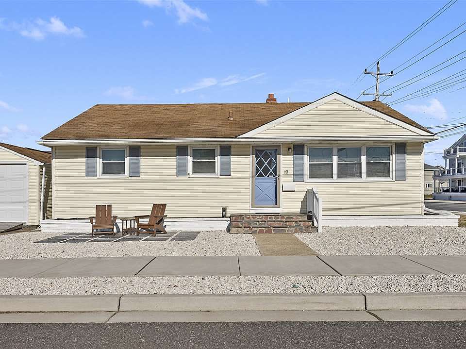 This bright and tastefully updated beach cottage in Wildwood Crest is move-in ready. There have been an array of renovations that make this home exceptional. The open, oversized eat-in kitchen has an abundance of storage and counter space, and seats 10 comfortably. In the kitchen you'll also find brand new vinyl white oak flooring, a new sink, dishwasher and garbage disposal. Off of the kitchen is a separate laundry room with a new washer and dryer. Additional updates include new ceiling fans, hot water heater, electric service and breaker panel, front storm door, light fixtures, and Nest Thermostat for energy efficiency and remote control of AC/heat. Professionally installed stone and paver patio allows for sunset viewing all summer long. After returning home from the beach, store your beach gear in the large detached garage or separate storage shed and rinse off in the outdoor shower. This large corner lot is located one block away from Sunset Lake Park where you'll enjoy a paved walking path, summer concerts, kayak and boat launch, fishing pier, and lots of open grassy areas. Coffee, pastries, lunch and dinner options are all within walking distance. Don't delay on this unique Wildwood Crest opportunity. The Listing Agent is related to the Sellers.