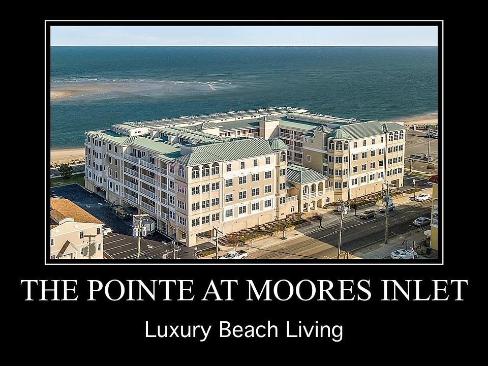 Exquisite Corner Unit at the Pointe at Moore's Inlet. This 2 Bedroom 2 Bath Home has been lovingly maintained an upgraded throughout the Years. There are only 6 2 bedrooms in this much sought after complex. Unit 114 may be the crown jewel. Gorgeous Hardwood floors adorn your entry, hallways, dining and Living Rooms while your baths and Kitchen are tiled. Both Bedrooms have been newly carpeted and furnished in 2023/2024 with Ethan Allen Furniture. The HVAC was replaced in 2021 alleviating any concern for replacement. Don't let the number of Bedrooms fool you. This Living Room and kitchen area is as big as the top floor penthouse on the 4th Floor. at 1416 Sq feet it is as big as many 3 bedrooms on the island. The kitchen is situated as to remain open to the Living and Dining rooms. You can sit at the split level Granite Island or the Leather sectional and feel a part of it all. This home has beautiful crown molding throughout most of the home lending to a very opulent feel. You will absolutely love all of the natural light that shines throughout this home as there is no shortage of windows and sliders. Enjoy the Inlet view from the Living room or make your way to the deck from either the dining Room or your master Bedroom. The Master bedroom has multiple closets, a jacuzzi tub, separate shower and double vanity. Unit 114 is on the pool deck yet is tucked away as to not be bothered by those splashing about. It is Super private. The Pointe at Moore's Inlet is Luxury living at its Finest. There is staff that is on site that keeps the property looking pristine throughout the year. Each Unit receives 2 parking spaces. 1 assigned and covered spot and 1 additional uncovered. There is a Storage room with each owner receiving a locked storage area. Located right at the Seawall, you will love the opportunity to watch the Sunrise over the Inlet or the sun setting from your condo. Ready to get some exercise? Take a stroll on the aforementioned seawall or hit the gym on the first floor. Looking for quiet? Mosey on down to the lobby and relax in the library with a good book. There are 3 elevators that service the building. 2 are accessed from the garage while a 3rd is in the lobby. Looking to unwind with a cocktail or ready for dinner? Take a walk about 50 feet to the Entertainment district and listen to the bands, grab a bite or have some cocktails on deck at the Inlet. September will find folks gathered at the Big screen at Joe Joes to watch the Phightins' and the Birds. Whatever it is that you are looking for, you can find it here at the Pointe at Moore's Inlet.