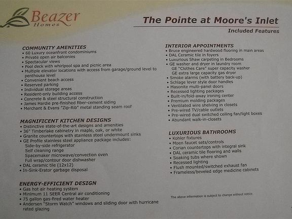 Penthouse at The Pointe at Moores Inlet. This is as good as it gets. 3 Bedroom 3 Full Baths so each Bedroom has its own Full Bath. Two Story with Two Decks, One deck with enough privacy to get that all over tan. No more tan lines. Townhouse Overlooks the Entire Island. When you walk into this Townhouse you know this is THE ONE. The 20ft Ceiling with Mountaintop Hurricane Windows are Breathtaking. The Amenities are impressive, like Pool, Spa, Fitness Center, Garage Parking, Three Elevators and everything is Handicap Accessible. If you plan to rent you should get $35 to $40,000 per Season. We are A.D.A. Compliant..