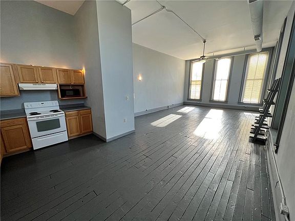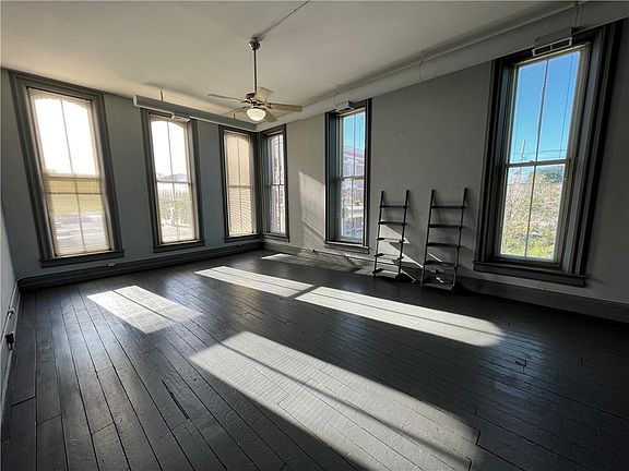 Downtown apartment! 1 large bedroom with stackable washer & dryer. Recently updated bathroom. Open concept kitchen & living room with 12'+ ceilings. Corner unit with floor to ceiling windows overlooking the courthouse square (right above the RE/MAX Cornerstone office). Renter pays for gas/electric, landlord will pay water/sewer/trash. Off street parking is available within 1 block. Great location for enjoying First Fridays, music fest or quick commutes to campus.