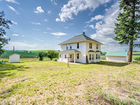 MLS# 269387 Welcome to this charming white farmhouse situated on 7.7 acres of pristine land. This beautiful property offers a serene and idyllic countryside setting, perfect for those seeking a peaceful retreat. The house itself features 4 bedrooms and 2 bathrooms, providing ample space for a growing family or accommodating guests. With its large windows, the home is flooded with natural light, creating a warm and inviting atmosphere throughout. Notably, the upstairs bathroom has been tastefully remodeled, boasting a large soaking tub and an oversized shower. Additionally, an upstairs sitting room provides a cozy space for relaxation or entertainment. Beyond the main house, this property offers a range of outbuildings designed to cater to various needs. A large mechanical shed, complete with 5 stalls, offers ample space for storage and housing equipment. Adjacent to the shed, an attached wood shop awaits with built-in drawers, a counter, a garage door, and a vintage burning stove, making it an ideal workspace for creative endeavors. For equestrian enthusiasts, the barn, a cherished Palouse original, features a newer metal roof, a spacious deck, and a second floor running the entire length of the building. This versatile structure provides endless possibilities for storage, workshops, or even transforming it into a unique living space. The property's expansive grounds showcase its versatility and natural beauty. A small fruit orchard adds a touch of color and flavor, while the pasture is perfect for accommodating horses. Two acres of wheat and pea fields provide an opportunity for agricultural pursuits, while three acres of harvestable grass hay offer additional income potential. Whether you are looking for a peaceful family home, a hobby farm, or a place to embrace a rural lifestyle, this property offers endless possibilities. Don't miss the chance to make this extraordinary property your own. Schedule a showing today and experience the beauty and tranquility it has to offer!