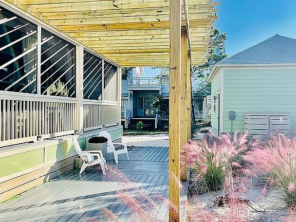 2.5% PAID TO REALTOR-HURRY Wont last long one and only on large corner lot in WindMark Beach by the Beach! Beautiful Home in WindMark Beach on Front Street/Washboard Ct. Home features bay/ gulf view from the second floor. Many custom upgrades including 40x10 Trex decking pergola . 4 Bedrooms two with custom bunkbeds lower queen top full with adjustable beds. Home sleeps 12-16 people fully furnished all new or two years new furniture. 1 King, 3 Queens 4 full and 1 twin trundle! Home has lots of storage in 2 car garage with built in shelves all the way around garage. Large corner lot with lots of palm trees! 1 min walk down boardwalk to white sandy beach! This home has been personal use only but would make a great rental as well. Restaurants, pool, workout facility, boutiques are just one block away!