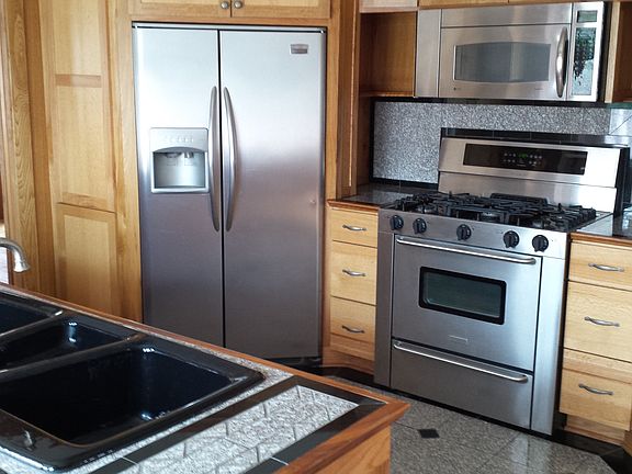 This 2400 s.f., two story 1923 home was completely remodeled in 2007. Fully updated to modern codes and standards. Reworked inside and out. Central heating and air conditioning. Has 2 Master suites, each are on separate floors, and a 3rd large bedroom. Lots of closet space and tall ceilings. Open dinning and living areas, office or exorcise room and a laundry area. Top floor also has a library area. There are 2 freestanding propane wood type stoves. Custom hardwood floors and trim, granite kitchen counters and floor. Bathrooms have either porcelain tiles or marble. Carpeting is of high quality. Lots of off street parking and a pull through driveway. Has a 2 car covered parking area, circle driveway and an optional enclosed R.V. parking (16'w x 38'd x 12't on concrete) / shop area. Home is surrounded by home owners, is a short walking distance to the river, historic village, down town shopping (grocery and more), movie theater and schools. Has a large flower garden. This is a very nice custom home. As such, there is a $2500.00 security deposit. The monthly rent is $1,250.00. Utilities are not included. Small dogs will be considered. Additional deposit may be required. You can see a video by either requesting it or checking our Rocking Bar L face-book page.