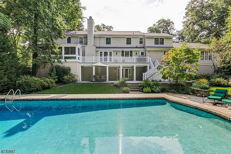 Impressive and stately Colonial boasts spacious rooms throughout, designer kitchen, large family room, huge walk-out lower level . Vacation at home w park like property an in-ground heated pool. Beautifully finished inside and out you will find a spacious living room with custom built-ins and a fireplace. The designer kitchen features wood ceiling beams, wood cabinets and center island that opens to the deck Enjoy the airy sun room that looks out over the pool and backyard. Upstairs are 4 bedrooms including a luxurious master bedroom suite + en-suite. In addition, there is a huge walk-out lower level recreation room, bedroom, two full baths, suana + cedar closet. Located in a top-rated school system, NYC trains, and shopping, Mall at Short Hills and Newark Intl. Airport.