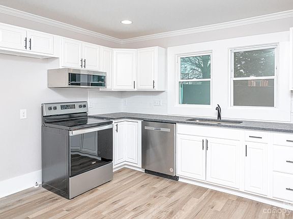 Charming, 2 bedroom, 1 bathroom house in quiet north Kannapolis location. Recently renovated with all the bells and whistles this home features and open flow through concept, two nice sized bedrooms, custom kitchen finishes, stainless steel appliances including a stackable washer & dryer. Covered rocking chair front porch great for morning coffee or evening relaxing. Just minutes from all the entertainment options of downtown Kannapolis. No HOA or restrictions.