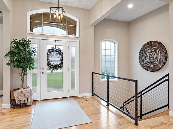 Luxury knows no limits in this impeccable custom built home! Thoughtfully designed & positioned on .5 acre cul-de-sac lot, the private fenced yard offers splendid sunsets,peaceful mornings,& multiple areas to embrace the feel of country setting w/convenience of quick access to Highway.The upgrades are bountiful:custom designed kitchen,stunning stone counters,Built in S.S. appliances,(6 burner)gas cook top,double sinks,massive island,Soft close cabinets (w/all the extras).Creative 10ft + ceilings adorned w/custom light features.Living rm shows off beautiful focal points,gas stone fireplace,a full wall of glass patio doors allowing light to pour into the open floor plan furthering the soft and fresh appeal of its design.Spa like MSTR bd & bath.Floating vanity w/undermount lighting,expansive wlk-in closet.Lower Lvl offers enormous Great RM, work area w/counter, Sportsman's locked closet! Garage staircase,4th Full bth,gorgeous custom bar, formal office,workout/flex room & tons of storage!