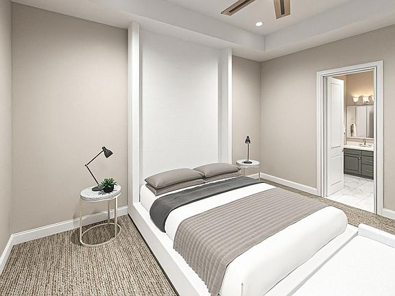 Well-designed living. The Fifer's welcoming side covered entry and foyer flow into the expansive casual dining area and great room with tray ceiling and rear yard access. The well-equipped gourmet kitchen is complete with a large center island with breakfast bar, plenty of counter and cabinet space, and huge pantry. The stunning primary bedroom suite is highlighted by a soaring tray ceiling, enormous walk-in closet, and spa-like primary bath with dual-sink vanity, luxe glass-enclosed shower with seat and drying area, and private water closet. The sizable secondary bedroom features a roomy closet and private full bath. Additional highlights include a convenient powder room off the foyer, centrally located laundry, and additional storage.