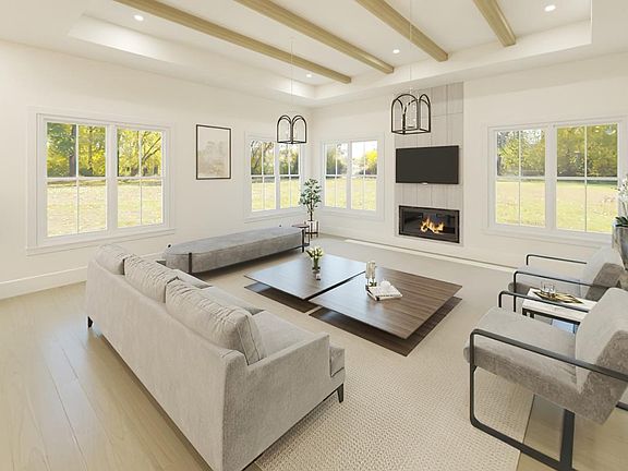 Luxe contemporary design. The Wetherbee's inviting side covered entry and impressive two-story foyer open immediately onto the expansive great room with tray ceiling, and casual dining area with rear yard access. The well-equipped gourmet kitchen is highlighted by a large center island with breakfast bar, plenty of counter and cabinet space, and sizable walk-in pantry. The elegant primary bedroom suite is enhanced by a gorgeous tray ceiling, ample walk-in closet with linen storage, and spa-like primary bath with dual-sink vanity, luxe glass-enclosed shower with seat, and private water closet. Secluded on the second floor, a generous loft space and large secondary bedroom with walk-in closet and shared full hall bath. Additional highlights include a convenient powder room and everyday entry, centrally located laundry, and plenty of additional storage.
