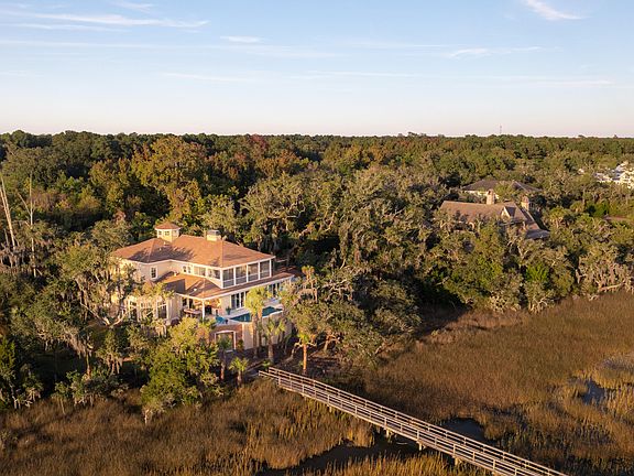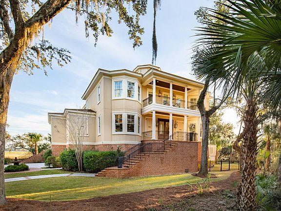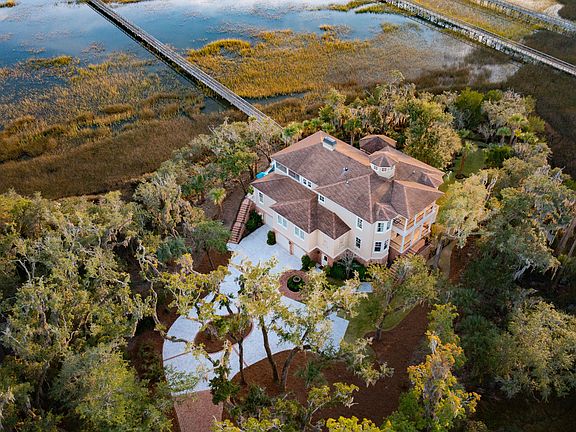 Imagine a deep water estate situated on 1.4 acres offering privacy and endless views in the desirable gated community of Beresford Hall. Entering through the front doors you're greeted by a welcoming foyer featuring soaring ceilings, a beautiful wrought iron double staircase and gleaming marble floors. To the right, a large formal dining room flows seamlessly into the chef's kitchen boasting custom designed cabinets, natural stone counters and a beautiful copper Luna sink on the island. Featuring high end appliances to include a Viking cooktop, Sub-Zero refrigerator with extra refrigerated drawers and high end dual temperature wine cooler, Miele oven, Miele warming drawer, and Miele built in coffee maker. An intimate breakfast room with wall to wall windows completes the space overlookingthe beautifully landscaped backyard. Opening into the generously sized family room showcasing endless waterfront views and including a beautiful Onyx fireplace and an Up-lit Onyx Bar area this is the perfect space for entertaining family and friends. Large sliding glass doors lead out to the back porch and pool creating an impressive indoor/outdoor space overlooking the water and Daniel Island beyond. The master bedroom suite is conveniently located off of the family room, offers private access to the patio and includes two master bathrooms. A private shower and sink are located across from one of the oversized closets, with another bathroom featuring Onyx countertops, a soaking tub, shower and private water closet. Finished off with an additional generously sized closet featuring built in custom designed cabinetry. The dedicated office space can be converted to an additional bedroom and two additional half baths complete the main level of the home. The second floor offers an additional living space and bar area with access to a large all seasons room where you will enjoy the very best views in the house. This area can easily be connected to the HVAC and converted to a heated space. A second master bedroom includes a walk in closet, porch access and a well appointed bathroom with 2 marble vanities. There are two additional guest bedrooms one of which is en suite offering access to the porch as well. Additional notable features of this home include heavy moldings, expansive views from the hurricane rated glass windows, a beautiful wood-paneled elevator providing access to all floors, and a three car garage with approximately 3,200 square feet of space suitable for storage, workshop, exercise room and many other uses. This area has heating and cooling vented into this area. A large fenced yard and private dock with a boatlift on deep water make this estate a true lowcountry paradise. The opportunities for year-round outdoor living and entertaining are endless. Neighborhood amenities include pool, clubhouse, play parks, jogging trails, community dock & more.