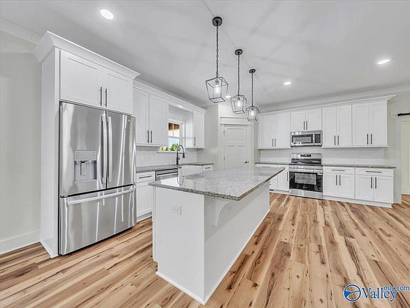 BRAND NEW CUSTOM BUILT HOME!! This home has it all! Open floor plan, wide open space in the kitchen, dining & greatroom! NO HOA! Cozy gas fireplace, 9 foot smooth ceilings throughout, lots of crown mold, barn doors, pocket doors, wrap porch at front and large covered porch at the back too all of this on a large corner lot! Isolated master suite w/glamour bath featuring large tile shower & his/hers vanities, walk in closet. 3BR, 2.5BA plus an office, LVP flooring throughout with tile in wet areas! Oversized & deep 2 car garage, Convenient in NE Madison county within minutes to shopping & dining, downtown huntsville, easy access to I565. Award winning BUCKHORN schools
