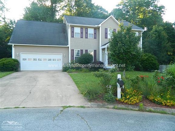 2-story Colonial in popular Windsor Forest. Four bedrooms, 2 1/2 baths, large family room w3ith gas log fireplace, eat-in kitchen plus formal dining room, lots of storage. Dramatic entry foyer with adjacent parlor large attached garage, back deck, 9 foot ceilings on main level, fully fenced back yard, private cul-de-sac lot, gentle stream with wild life all combine to make this a great home. Feels good and move in ready. For viewing instructions please contact Mike Zerressen 828-274-1110. Pets allowed with approval.