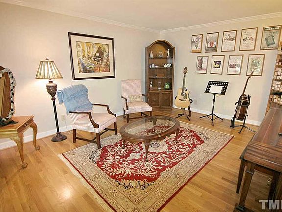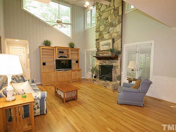 Lovely contemporary on over one acre in the heart of Cary. New paint inside and out. Hardwood floors refinished on 1st floor, screened porch. Able to park 4 cars in garages. No HOA fees paid. Corner lot and heavily wooded.