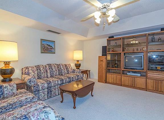 C.11150 Rarely available 3 bedroom attached villa with 2 car garage. Well maintained. Privacy and cool with trees and landscaped surround and charm on this tree-lined cul-de-sac street. Split bedroom floor plan. Newly installed impact glass windows and sliding glass doors. Resort style amenities including Clubhouse and the recently renovated 19th Hole, a Private Member Club with restaurant. 10 tennis courts, 9 heated swimming pools, bocce, shuffle board and more.in included in condo fee. This unique golf community is the closest in to Gulf of Mexico w/Bundled Golf. Walking both 18-hole courses is allowed but driving and pull carts are available. Par 70 and Par 55. Minutes to Fifth Avenue shops, dining and pristine Gulf Beaches.