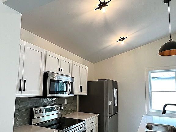 This contemporary, steel-sided two-story family home with energy efficiency + quality materials is nestled on a quiet street with a big yard. Modern amenities + dramatic style meet small-town charm in a sustainable footprint. High-efficiency heating an