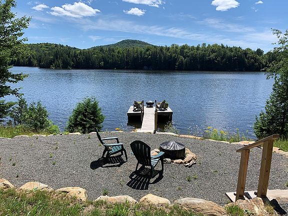 Price Reduced to $258,000 firm, and being sold in as-is condition. Cozy Cabin: 103' on Goodnow Flow. Looking South, this charming cabin has exquisite views of the mountains and lake from the screened porch and inside the cabin. There are 3 ample sized bedrooms and 1 bath. The living room has a working fireplace and beautiful views. The kitchen has the views, is open to the living room and is a pleasant working place for the cook and has plenty of storage, including a pantry. Even the bathroom has views. Tie your boat up to the large dock offering room to sit in the sun after your swim, reading your book, watching the sunsets, listening to the loons or just staring at the view, also a sitting area is adjacent to the lake with boulders around it with a fire pit in the middle. Located on the paved road, the water is pumped from the lake, there is a septic system. Set on piers and insulated, electric heat with thermostats in each room. Set up to drain for the winter months.