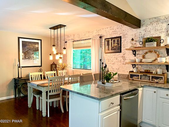 This immaculate home has been completely remodeled and sits privately on a corner lot in an amenity filled community. Once in this home, you will not want to leave. The open floor plan is great for entertaining inside & the large deck & firepit area are great for outdoor entertaining. The large front deck is great to sit and enjoy the quiet, peaceful setting while enjoying your morning coffee. The kitchen has gorgeous granite counters & stainless steel appliances. The attractive wood flooring is throughout adding a warm touch. The bathroom is beautifully tiled. Stay warm this winter with your wood stove and save money. The new large shed will hold all your outdoor equipment plus another shed for all your garden tools or snow blower. Enjoy the large lake, beach & restaurant.