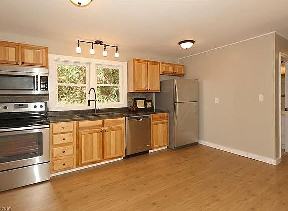 Completely remodeled 3 bedroom, 1.5 bath single level home on level lot with end of street privacy with open floor plan, new kitchen cabinets, stainless appliances, laminate flooring, new HVAC, updated windows & metal roof, 16X16 outbuilding and in town living.