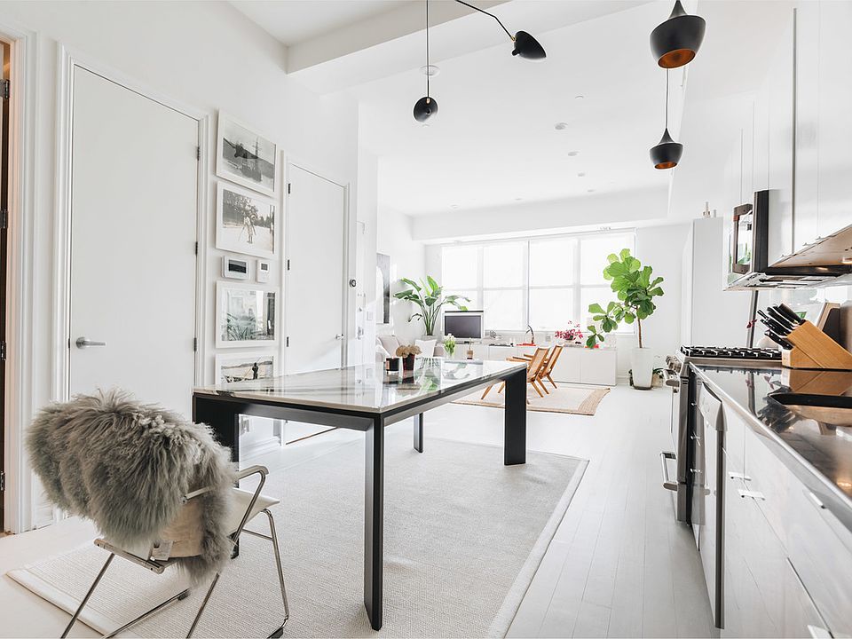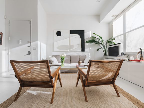 The unit is offered furnished or unfurnished. The video tour attached is featuring the current furnishing of the unit. 101 Wyckoff provides a unique opportunity to live in a classic Brooklyn loft. Soaring 12 foot ceilings, a spacious floor plan, hardwood floors, and lots of natural light make this a beautiful and luxurious place to call home. The 915 square foot loft is located on the 1st floor of a 4 story elevator building. This unit features 1 bedroom and 2 full bathrooms, a modern and open kitchen with full appliances, black granite counter tops, beautiful white hardwood floors, full sized in-unit Washer and Dryer , and tons closet/storage space. Upon entering the apartment, you walk into a large open living space that is shared by the living room and a modern, open kitchen and dining area. The bedroom features an en-suite bathroom with travertine stone and massive bathtub. The bedroom features a king-size bed with ultra comfortable mattress, 2 large closets and an additional linen closet The kitchen appliances are modern, stainless steel, and in great condition including a dishwasher and full-sized washer and dryer. And enjoy central heat and AC controlled by a Nest Thermostat. A shared common roof offers beautiful views of the Manhattan skyline. Enjoy sunsets or sunbathe on a hot day. The building is located in one of the most coveted and convenient areas of Bushwick. For anyone looking for comfort, central location, and a wonderful style of life, look no further! This very rare listing will not last for long! The Dekalb L station is right at the corner! And the M train is just a 10 minute walk away. Enjoy lots of amazing bars and restaurants off of the Wyckoff Ave including Ops, Faro, Variety Coffee, Turks Inn, and House of Yes. And Maria Hernandez park is just 2 blocks away.